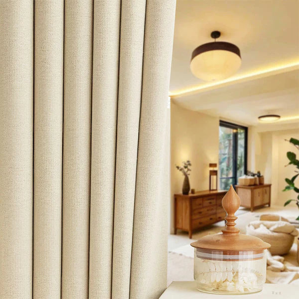 Nara blackout sötétítők japán stílusú, kellemes tapintású vászon textúrájú drapériák, amelyek nem gyűrődnek le, megakadályozzák a napfény behatolását és hőszigetelő szerepük van a hideg évszak alacsony hőmérséklete és a hőhullám ellen.